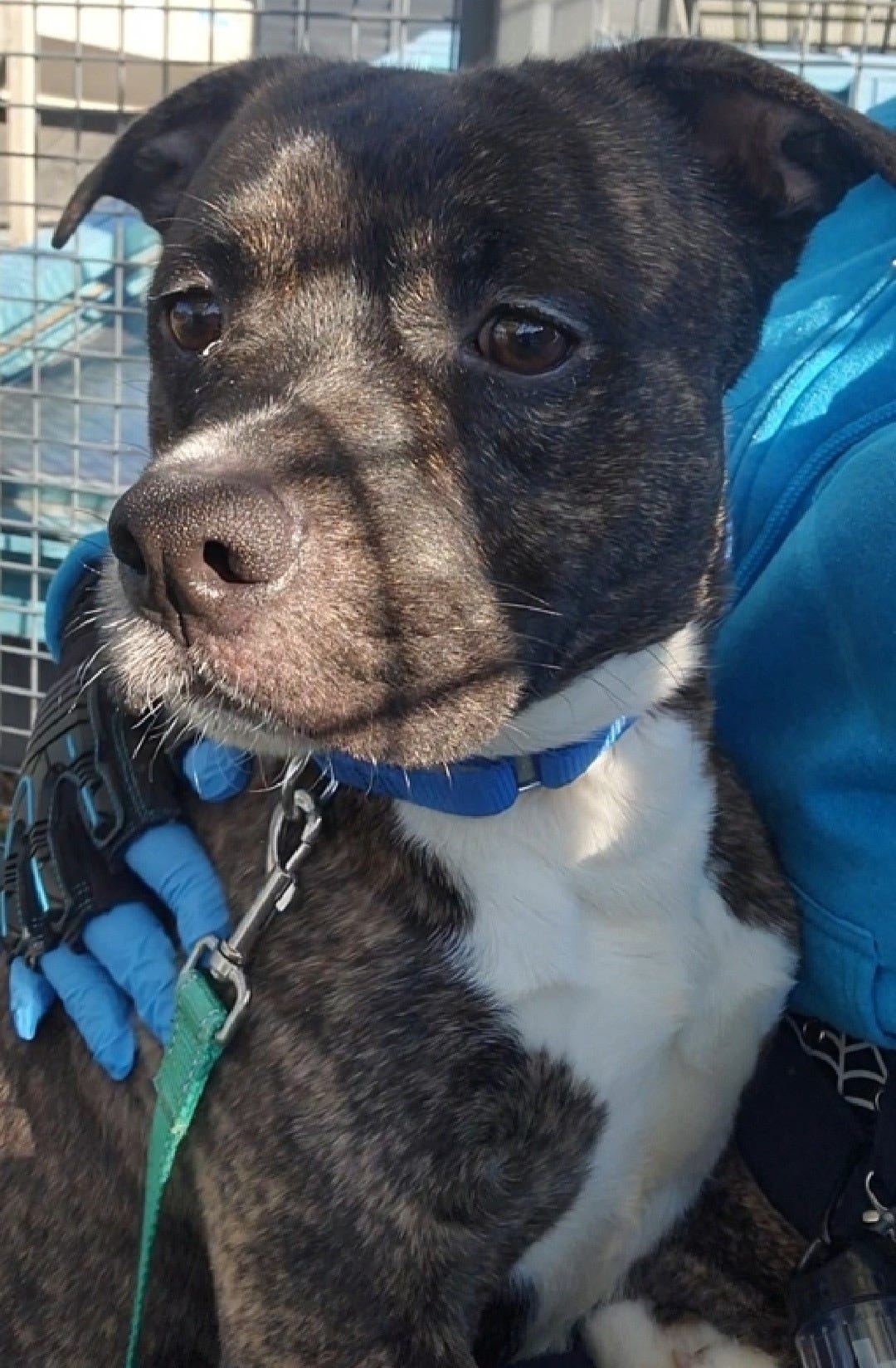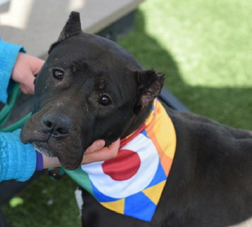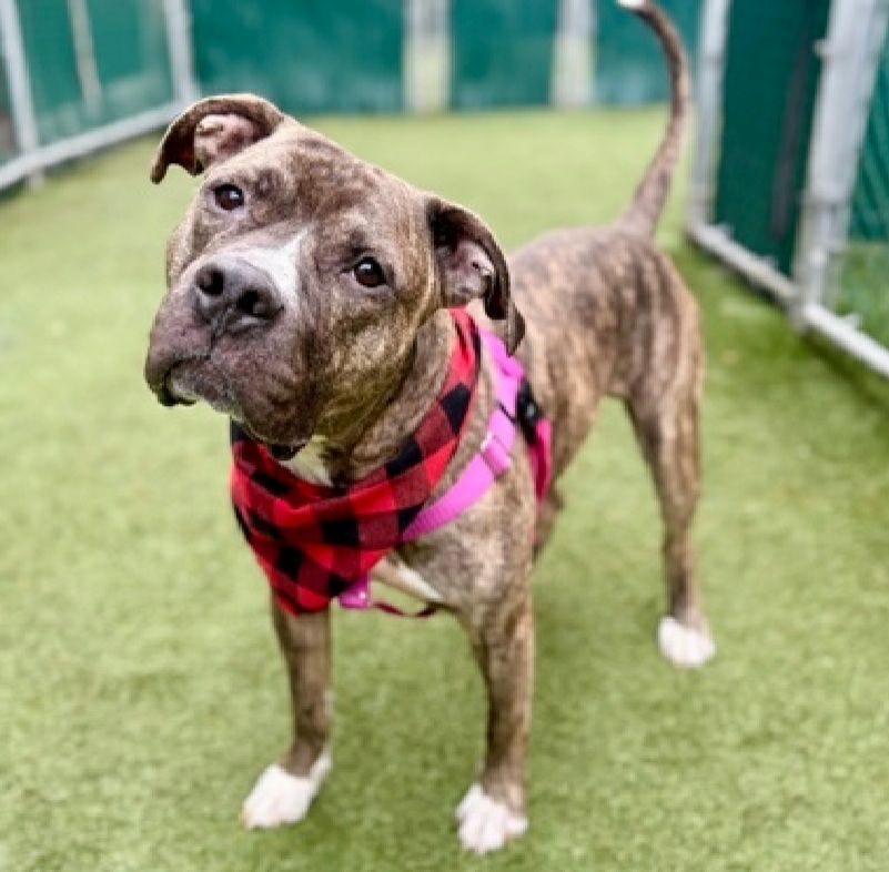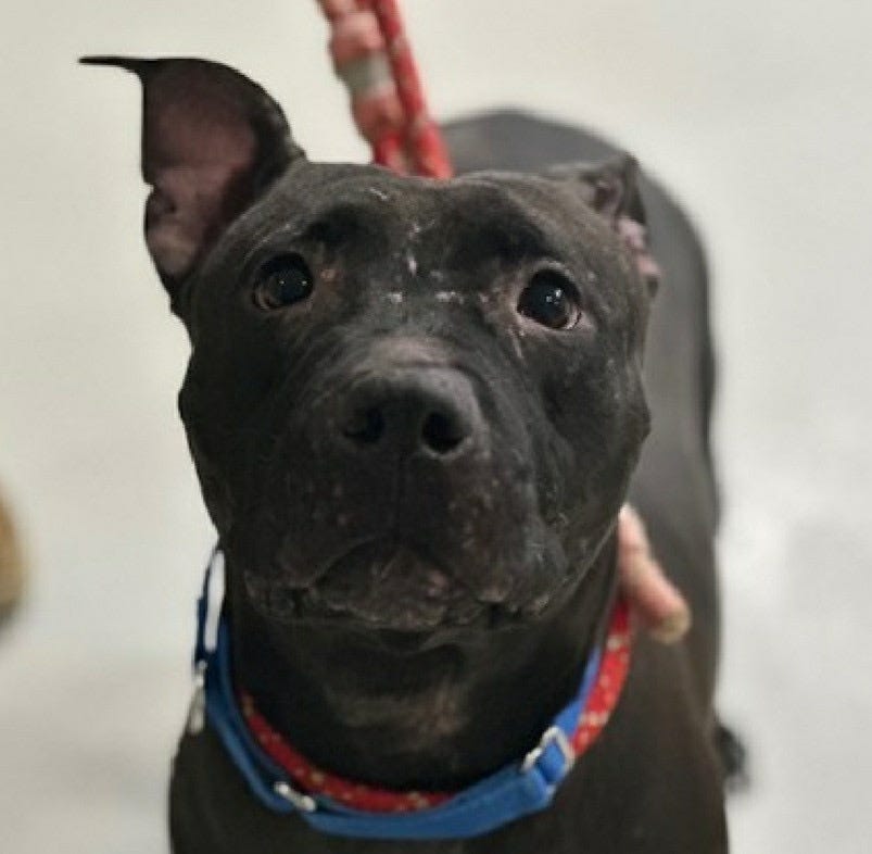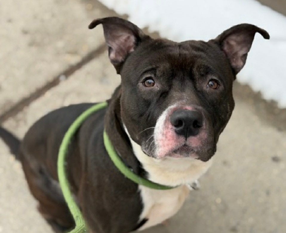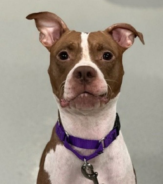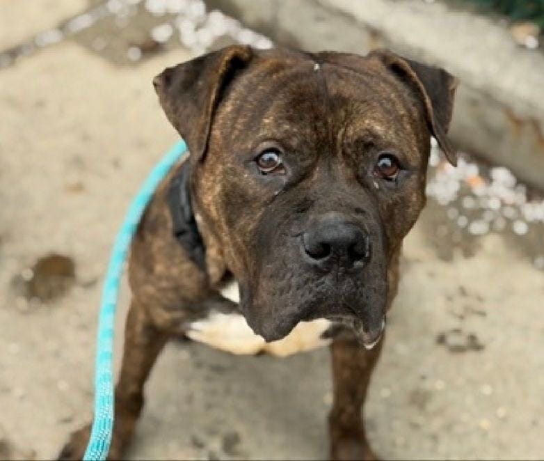“A big shy girl with a tough exterior,” a volunteer said of Luna. “She’s just a big baby at heart. And when I look into her big, dark eyes, I just melt. Luna walks nicely by my side, glancing up occasionally to check in with me. She loves treats and is highly food motivated. She’s been quiet and gentle and in her short time in the shelter has really grown on me.”