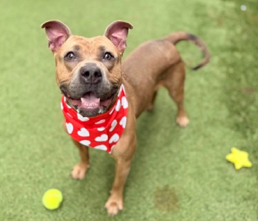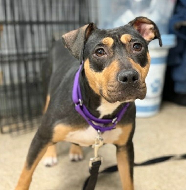 A staff member wrote: “Honeydew is a bright, people-seeking pup who leans in for affection and lights up for toys and training. She’s the kind of dog who learns fast, loves a ‘trade,’ and will happily play fetch between cuddle breaks.”
