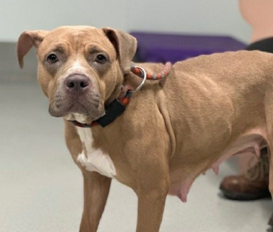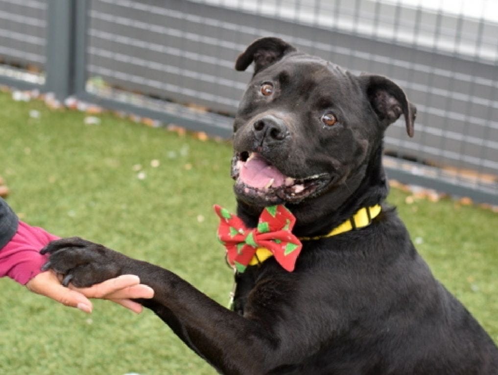 Another said, “This incredibly affectionate, human-adoring pup, who once lived with other dogs in a home, has become increasingly stressed in the shelter environment and needs out. Doeby is a social butterfly and greets all her people on our way out of the shelter, and on our way back in.”
